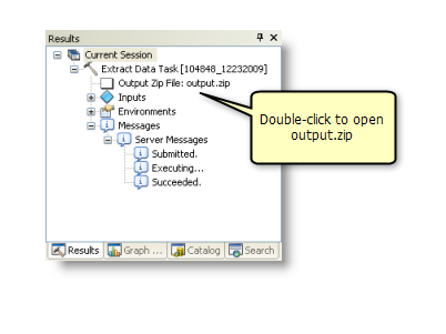 When the task completes, open the Results window to view the results of the task. Double-click output.zip to open the compressed file, then extract the data to a location of your choice.